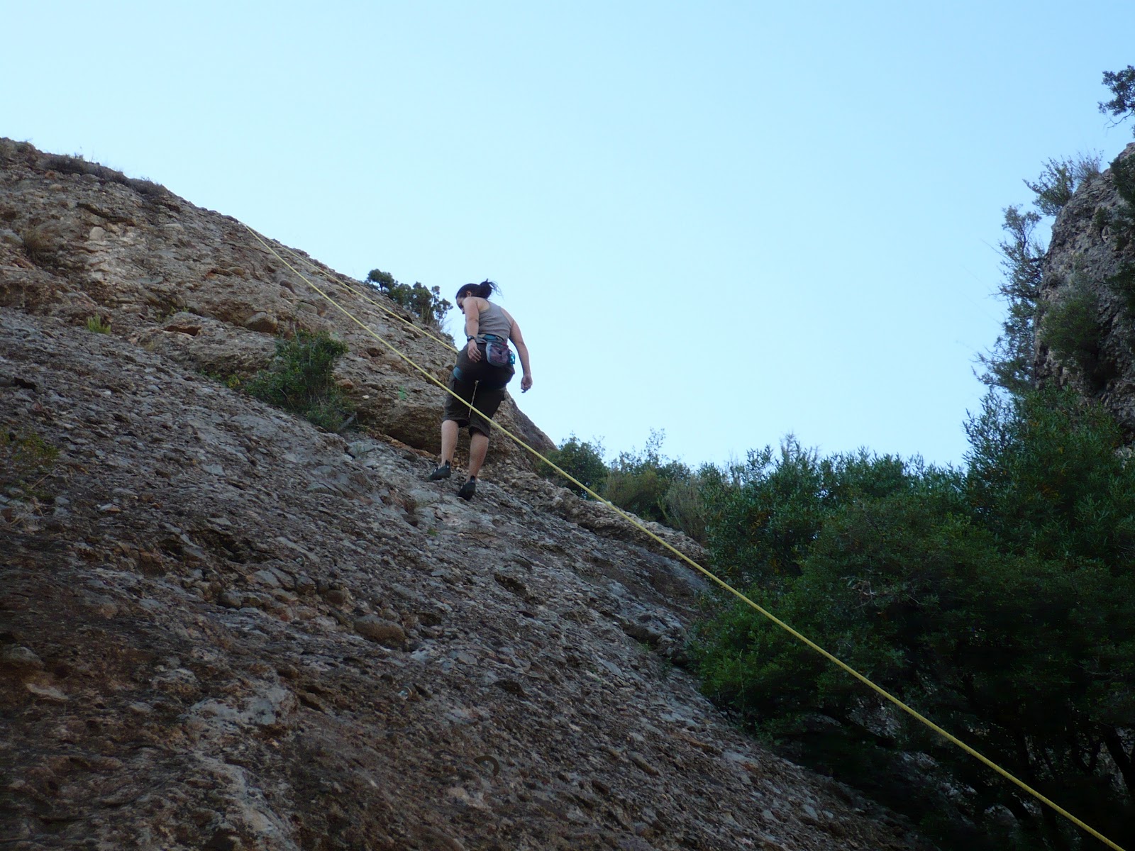 | Sector Pell Roja placa del indi en Collbató (Montserrat), unas vias de nivel IV a 6B+, tu eliges el grado que mas te guste, una fantástica tarde con gente muy maja y con la que aprender mas sobre la escalada, os dejo un enlace con las reseñas de las vias de Collbató http://www.kpujo.com/catala/ressenyes/collbato/pagines/base.html |